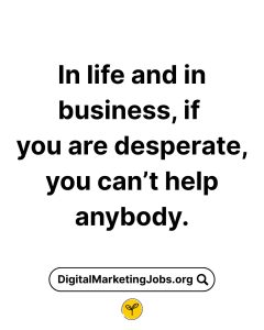 In life and in business, if you are desperate, you can’t help anybody. Fix your desperation first, then think about helping …